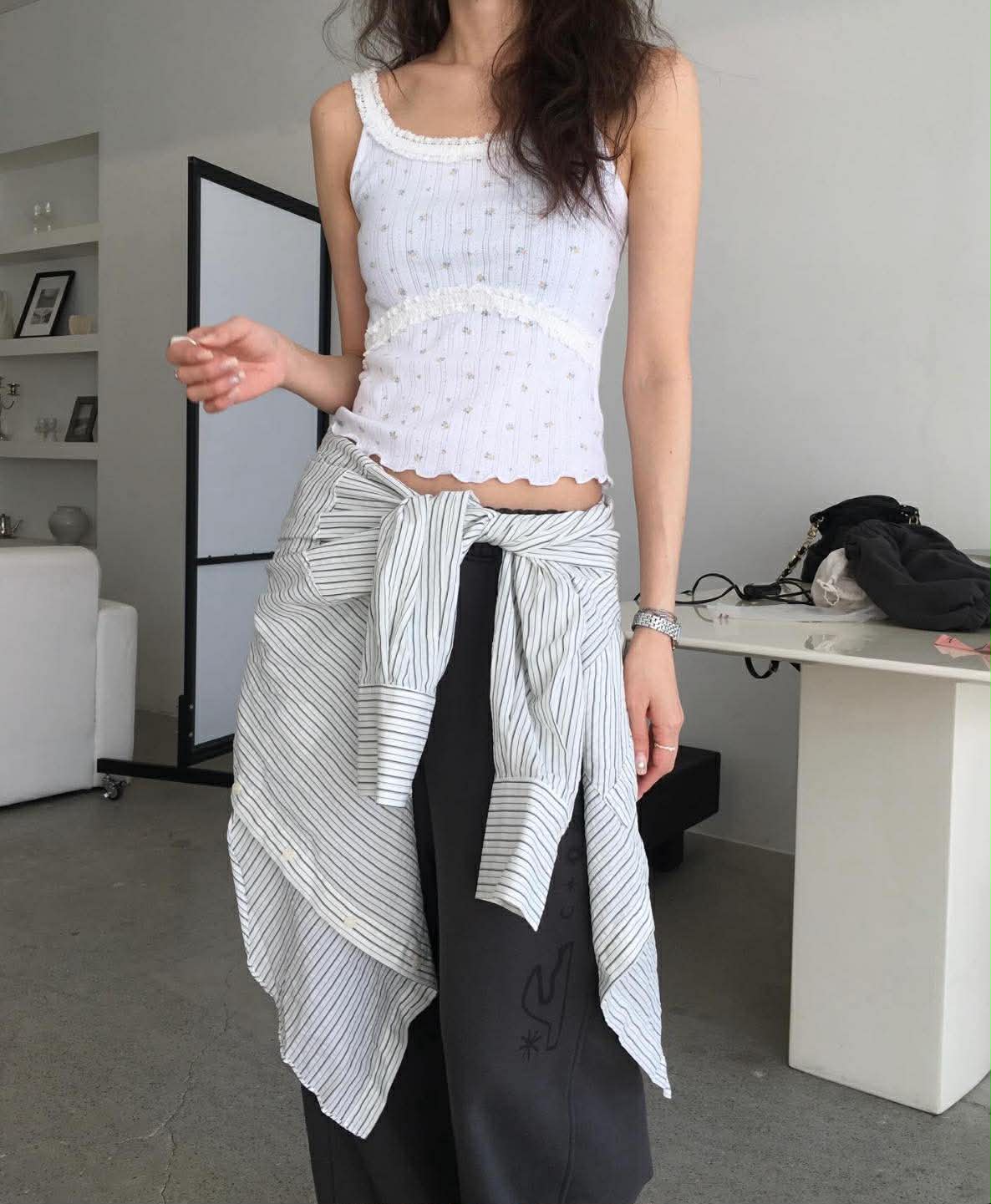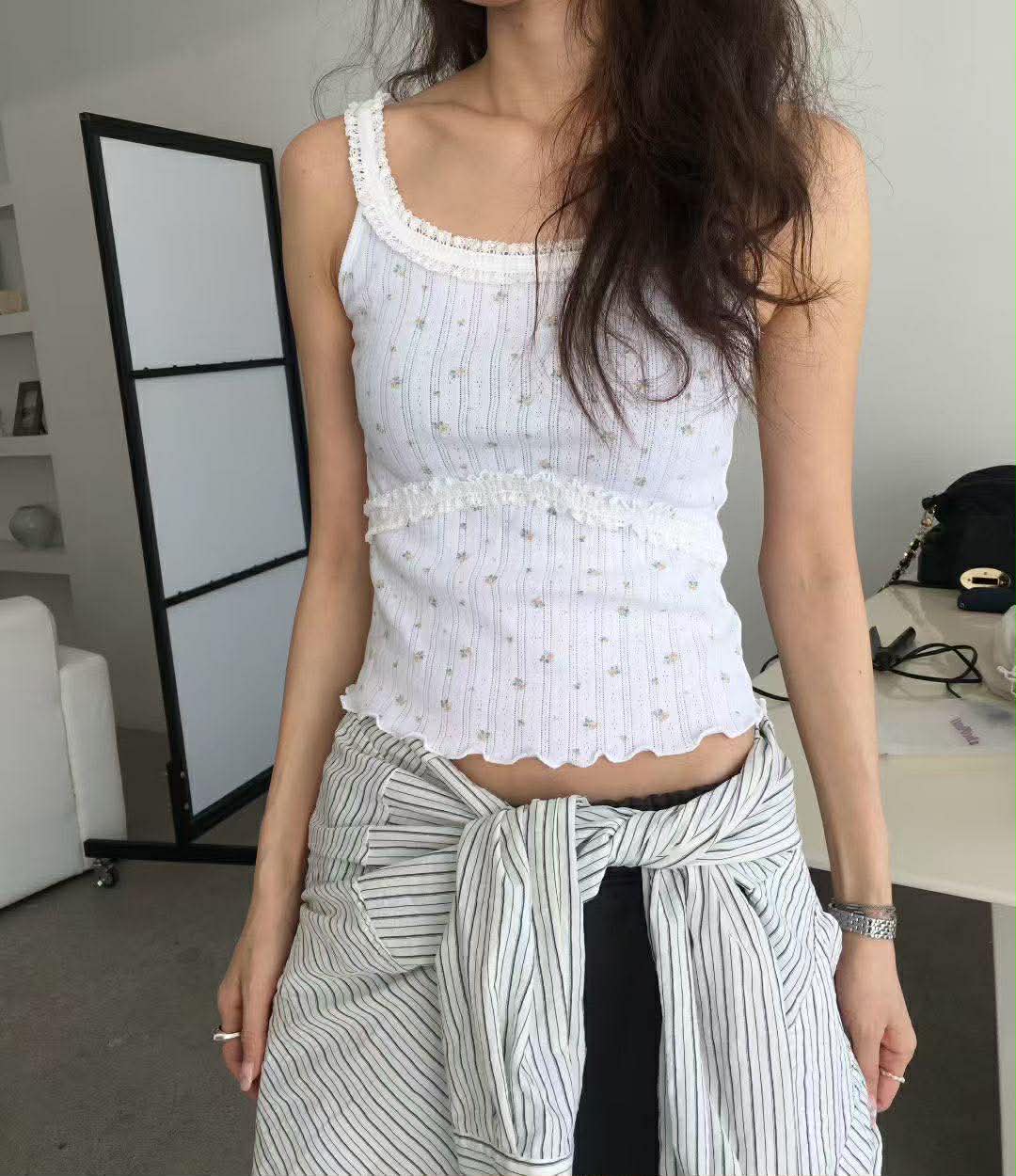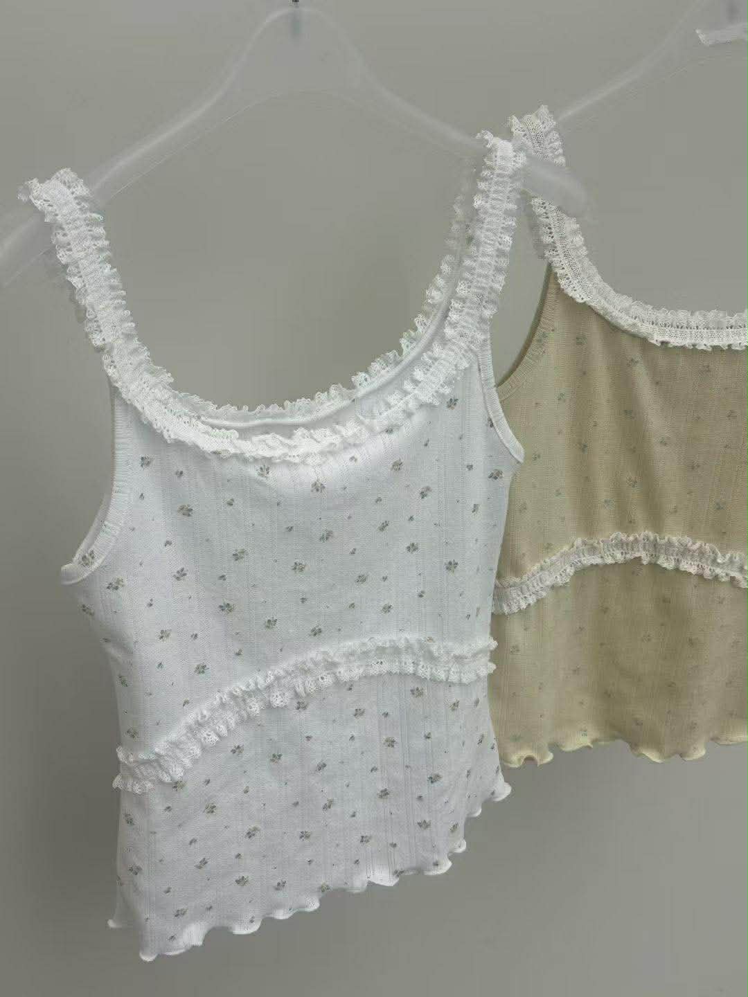 小碎花搭配布質蕾絲拼接 好有南法感啊(*´∀`)~♥