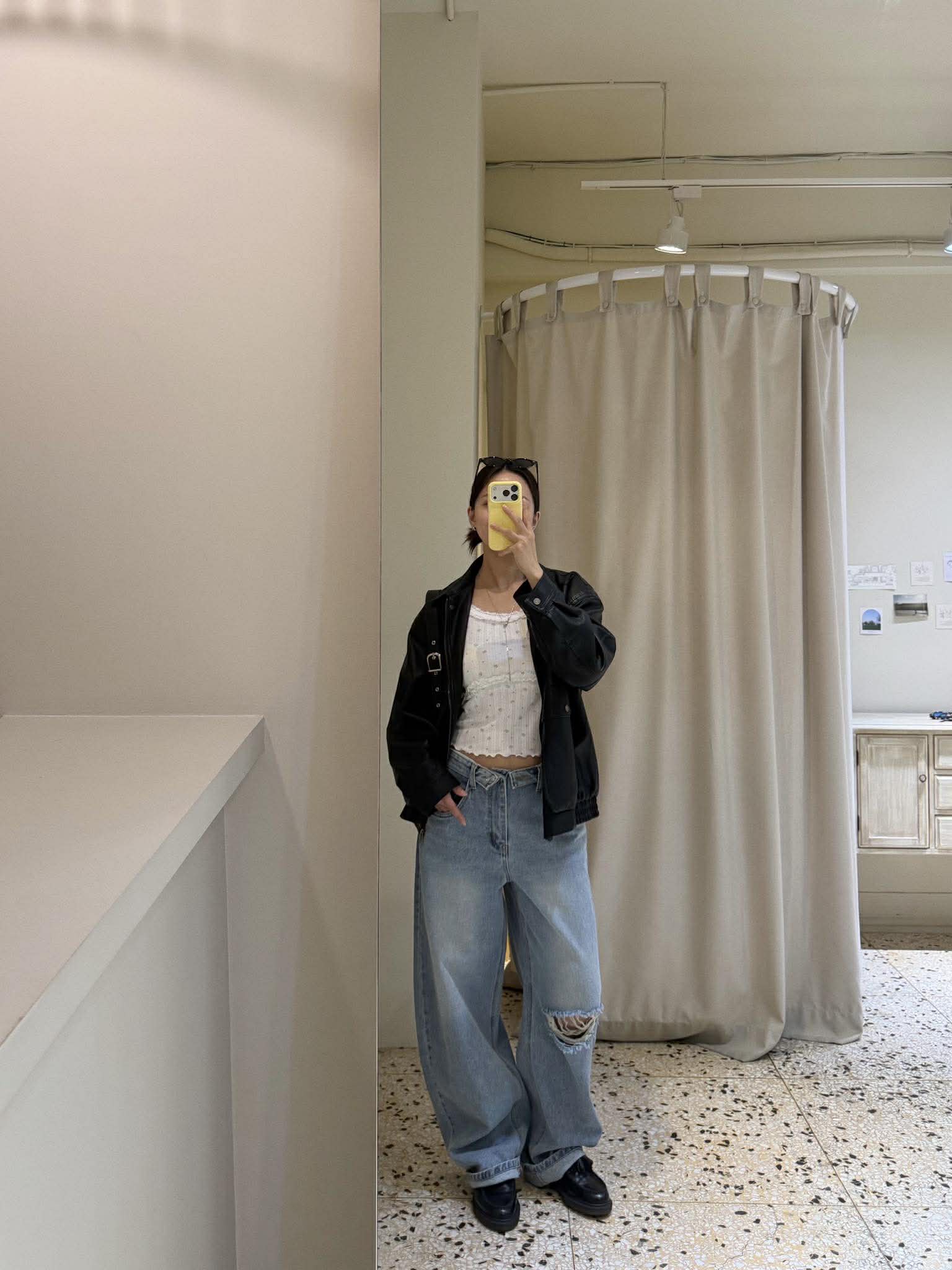 丹寧系列的下半身或者棉褲、短褲都非常適合 清新感十足