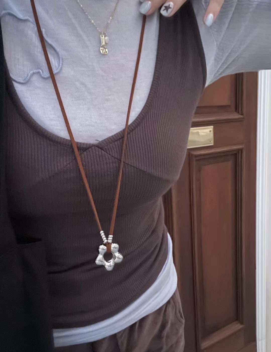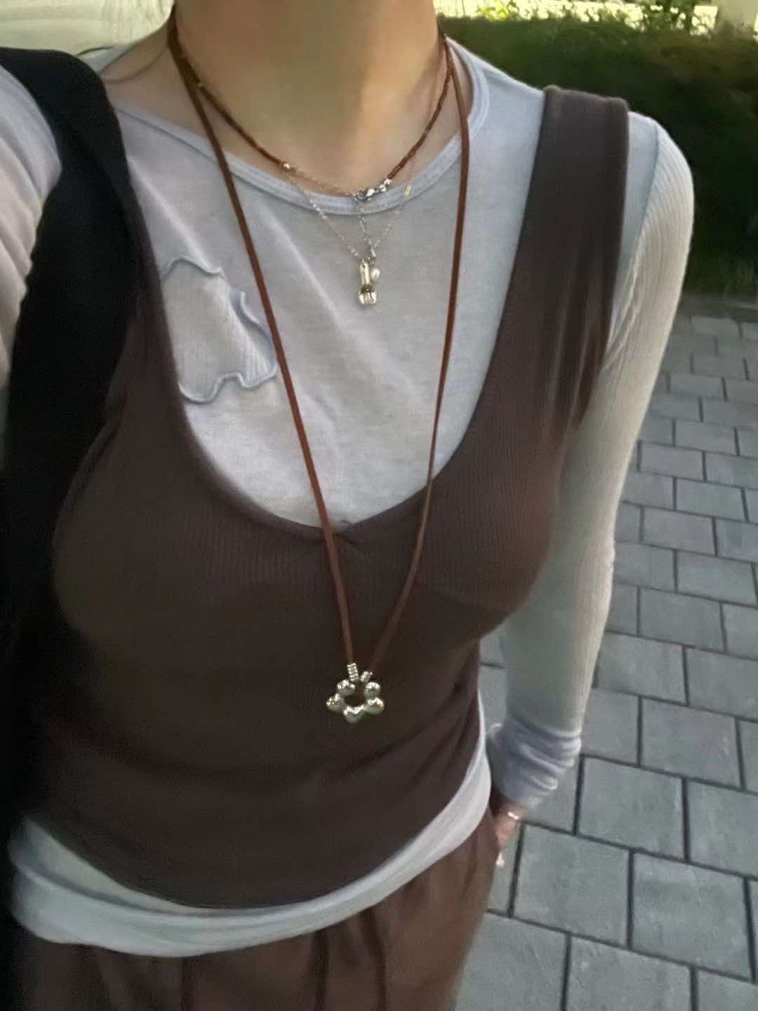 相較於黑繩的個性感 咖啡色麂皮比較不會那麼強烈