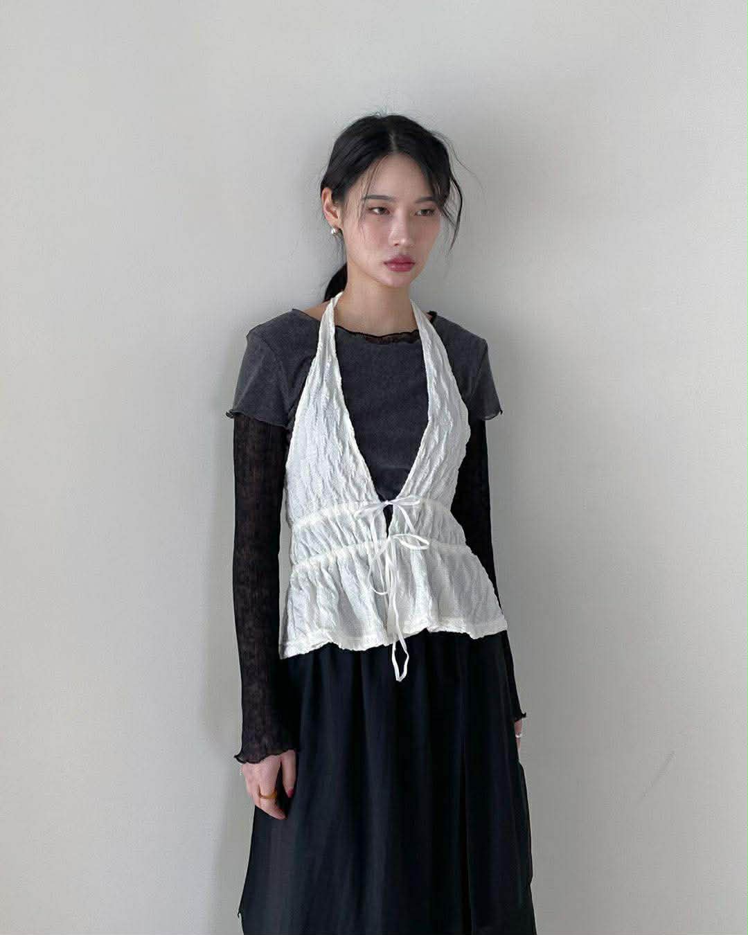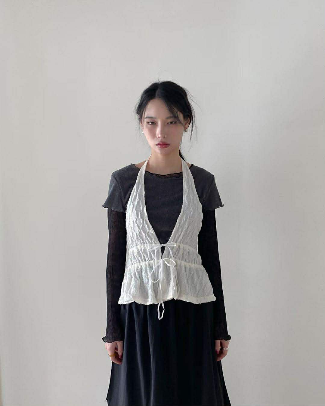 泡泡紗的立體織紋感讓背心自帶層次感 且透氣不悶熱