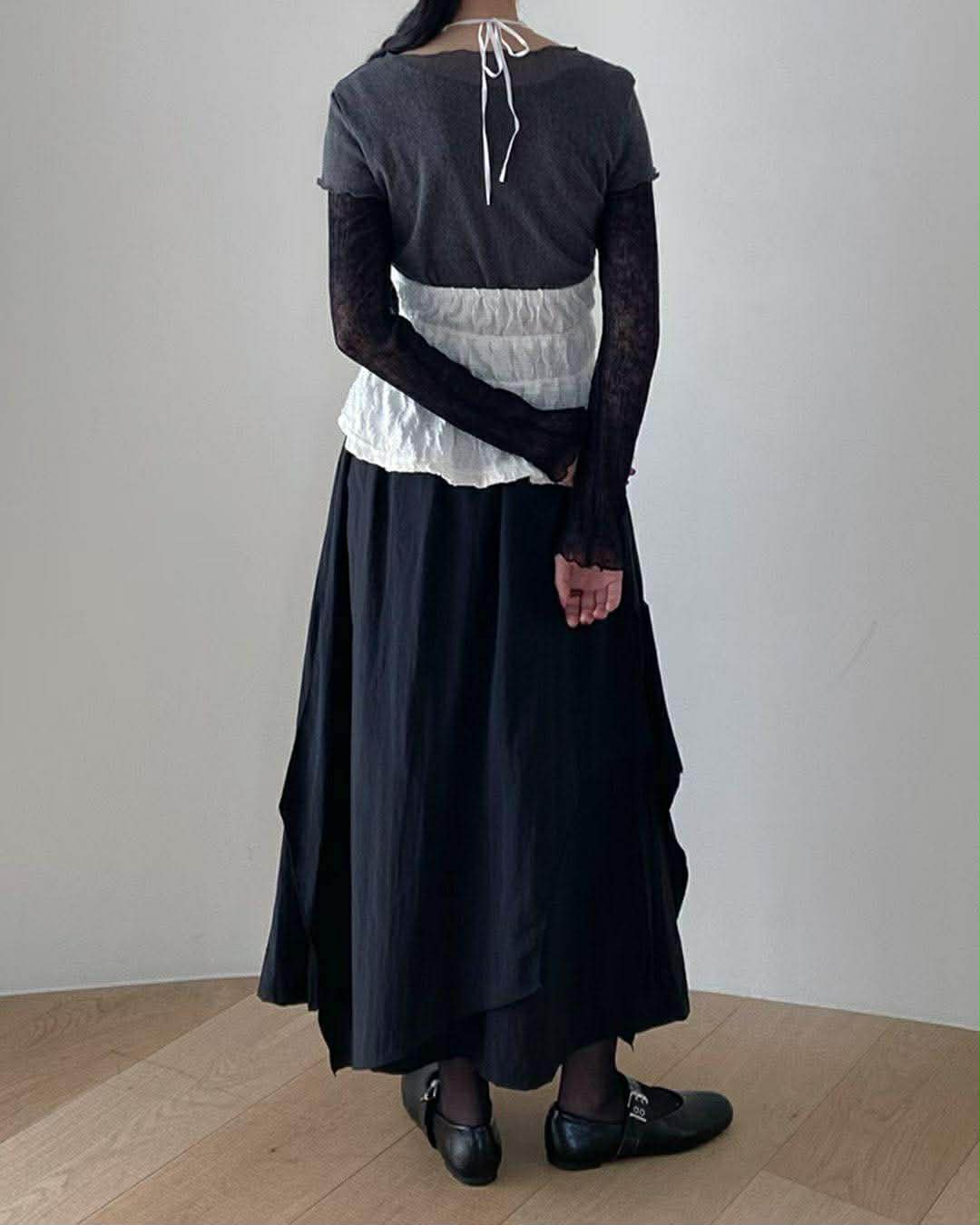 下擺的微荷葉感讓整體多了一點俏皮感 搭配裙裝或褲裝、洋裝都很可愛